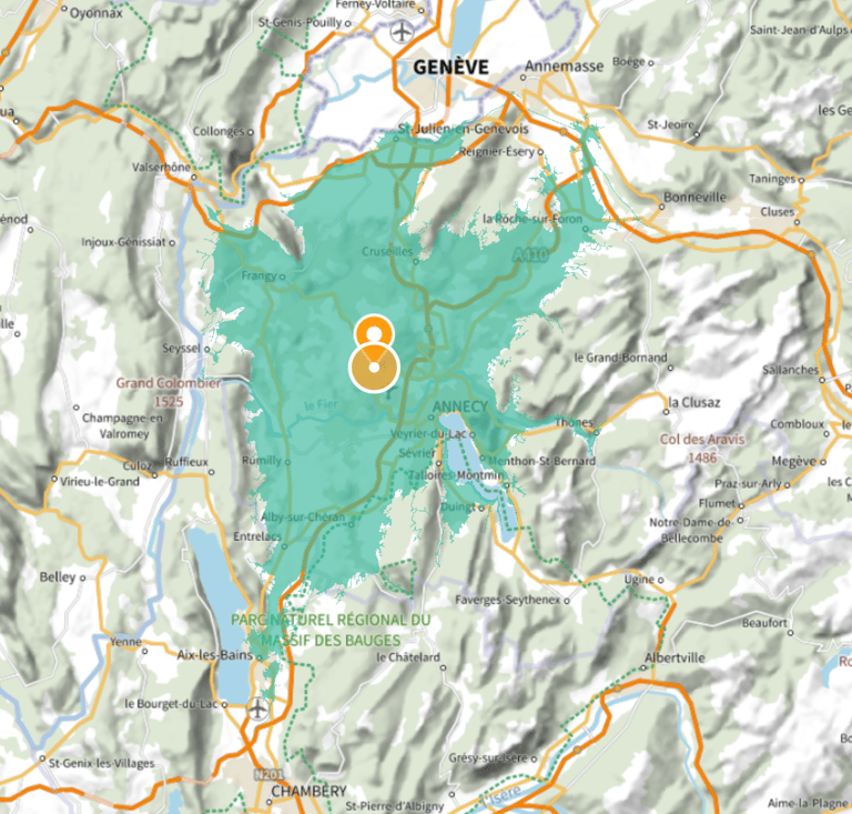 Zone géographique desservie sans frais de déplacement
