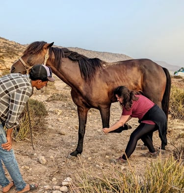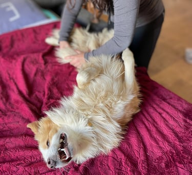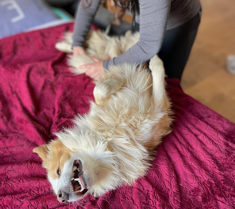 En effet, une zone complètement verrouillée pourra être abordée avec du massage ou des étirements pour faciliter le travail en ostéopathie ainsi que pour le confort de votre animal.