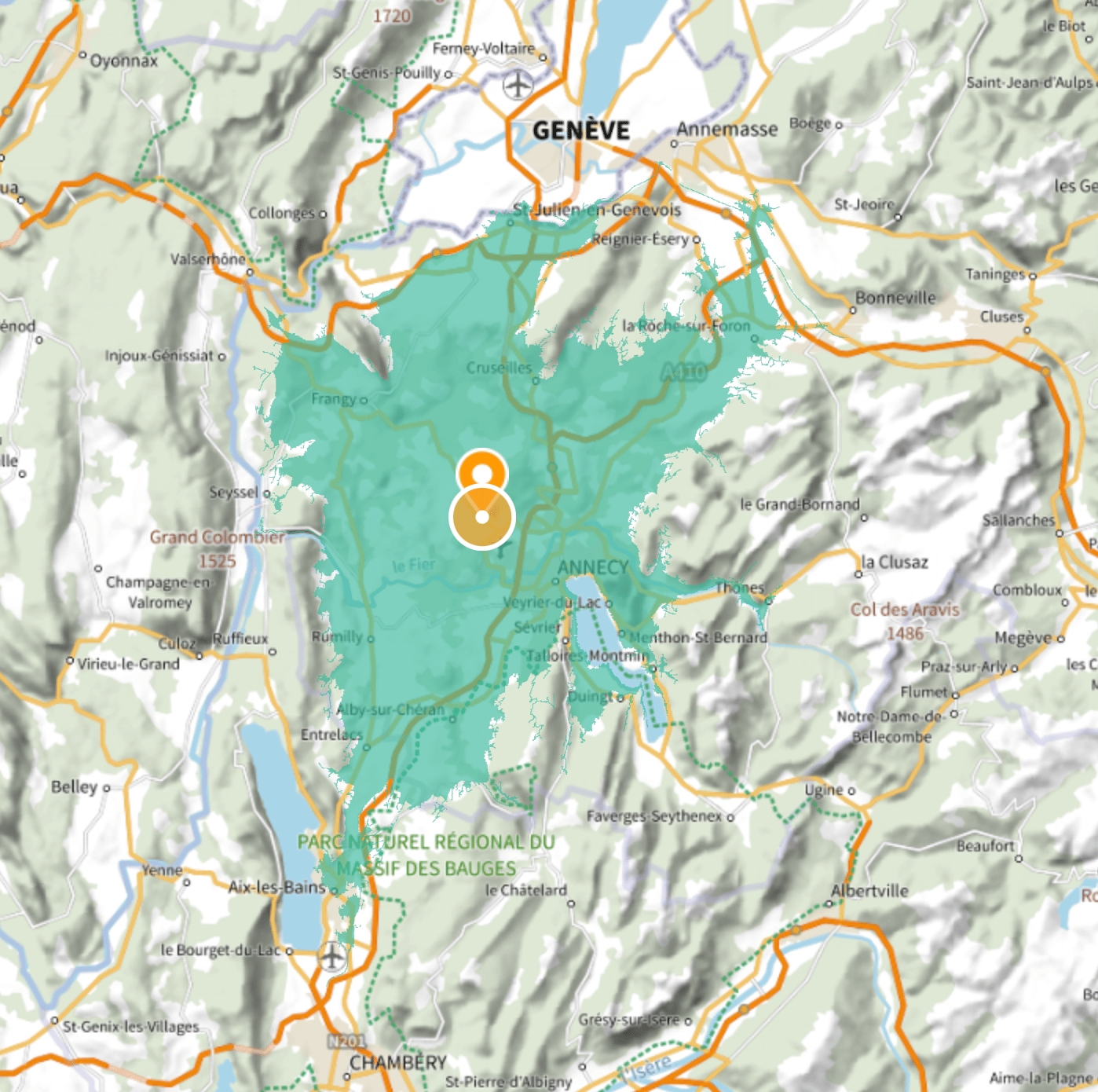 Zone géographique desservie sans frais de déplacement